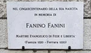 Già nel 2001, in occasione del 450° anniversario della morte di Fanino Fanini, per iniziativa evangelica è stata intitolata una strada a Porotto in suo onore. Nel 2021, in continuità con quel momento, apporre una targa al martire evangelico in centro della città significa di nuovo ricordare ai cittadini e agli avventori che le parole “conoscerete la verità e la verità vi farà liberi” possono ancora conferire, a chi le prende sul serio, un’invincibile forza d’animo e d’integrità personale.
